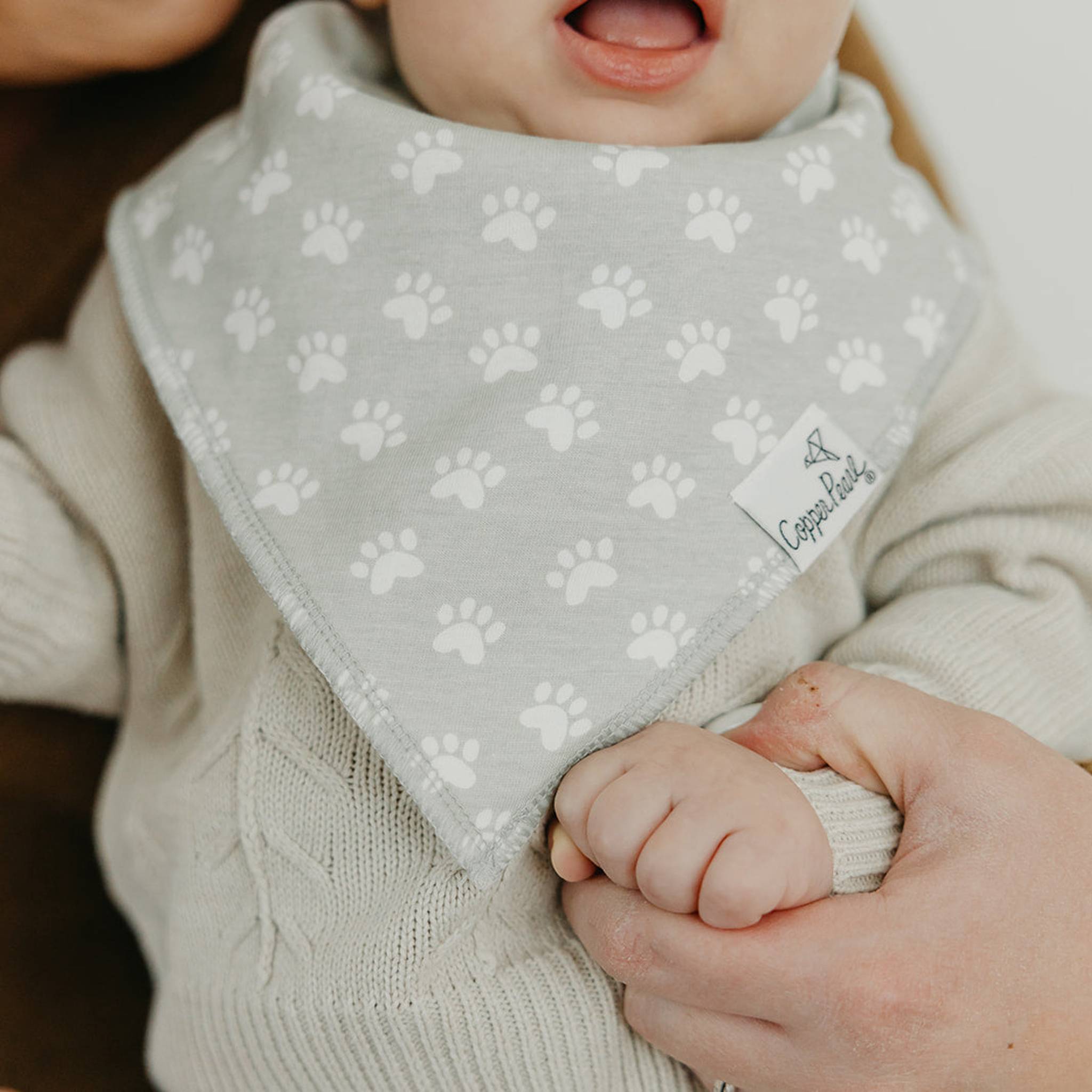 These stylish drool bibs are made of 100% absorbent cotton on the front and 100% polyester fleece on the back. The front of the baby bib is a stylish knit fabric and the back is a super soft fleece that keeps your baby completely dry even with the drooliest of babies. Great for teething babies! Adjustable nickel-free snaps for ages 3-36 months.