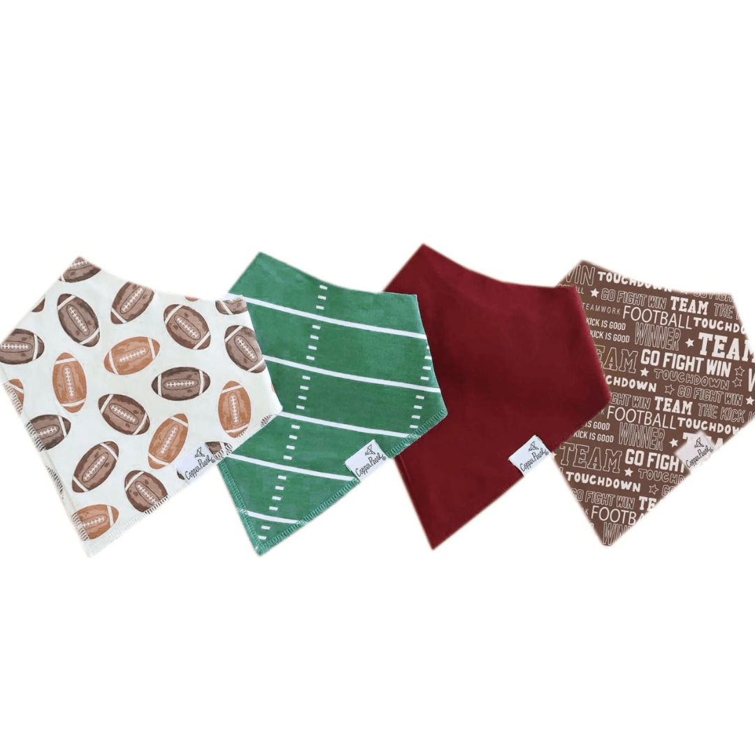 These stylish drool bibs are made of 100% absorbent cotton on the front and 100% polyester fleece on the back. The front of the baby bib is a stylish knit fabric and the back is a super soft fleece that keeps your baby completely dry even with the drooliest of babies. Great for teething babies! Adjustable nickel-free snaps for ages 3-36 months.