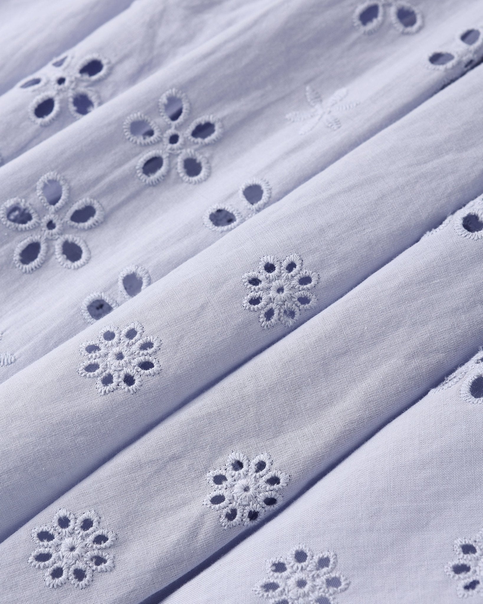 - Intricate eyelet fabric adds vintage charm.