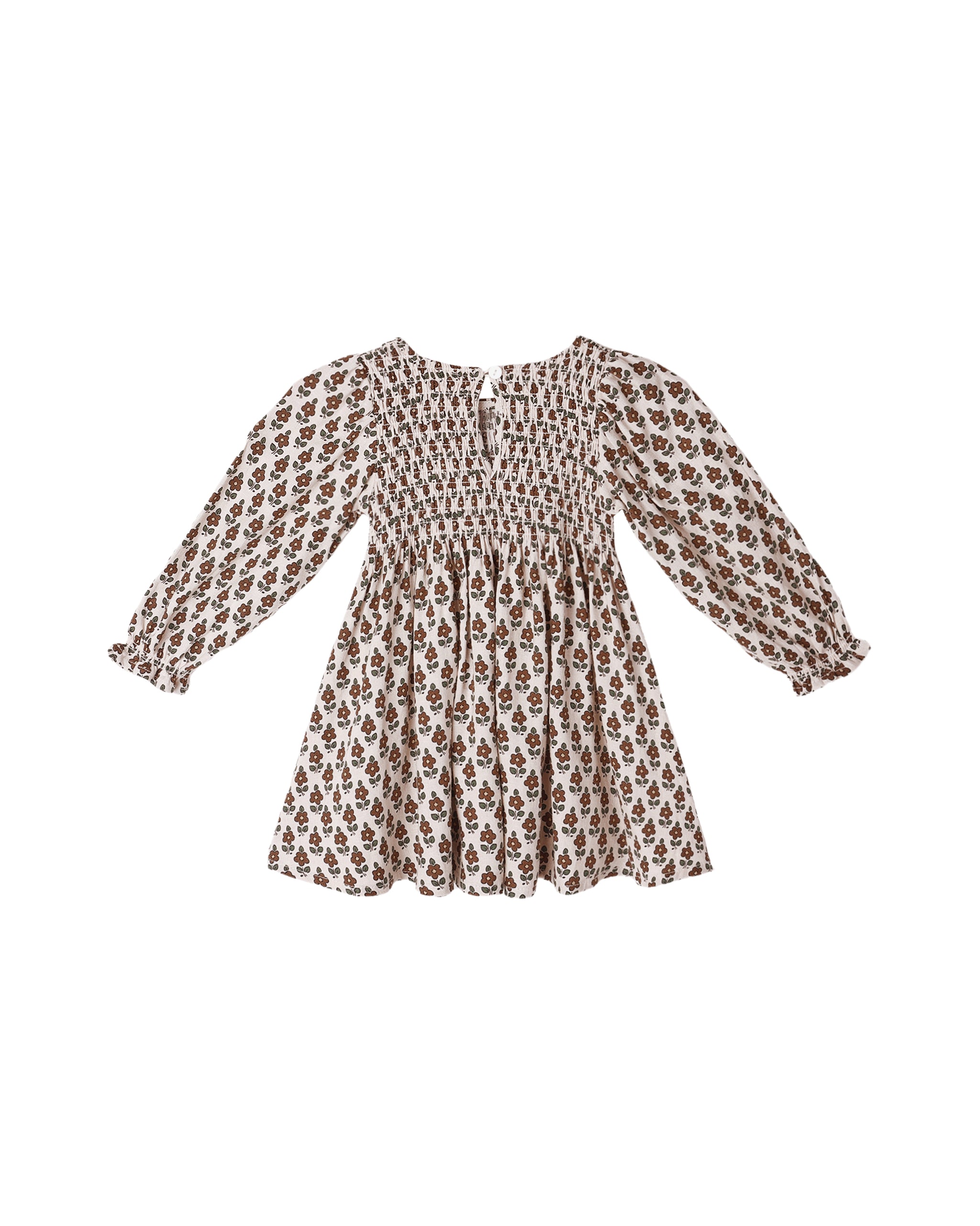 Our long sleeve Capri Dress features a darling smocked bodice and a flowy skirt. Coordinating bloomers included with sizes 0-3M - 18-24M.