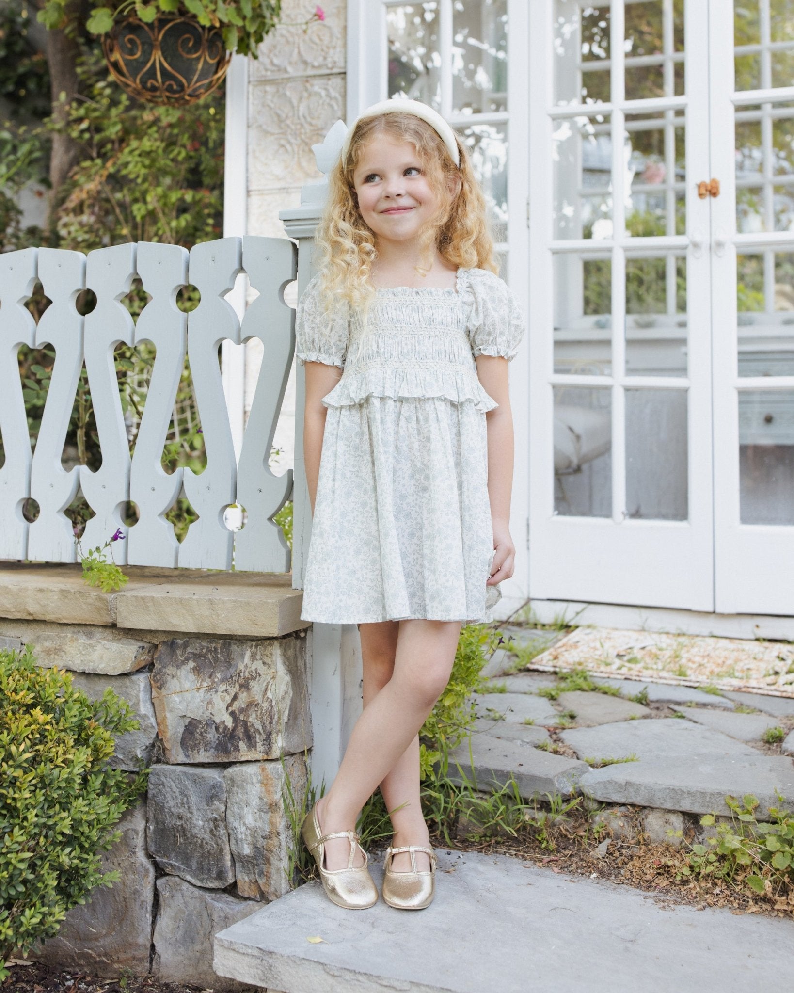 Embrace the magic of spring with this enchanting sky floral silhouette for girls. Featuring intricate smocked stitching and playful puff sleeves, this timeless A-line dress is designed for garden parties and sun-drenched memories.