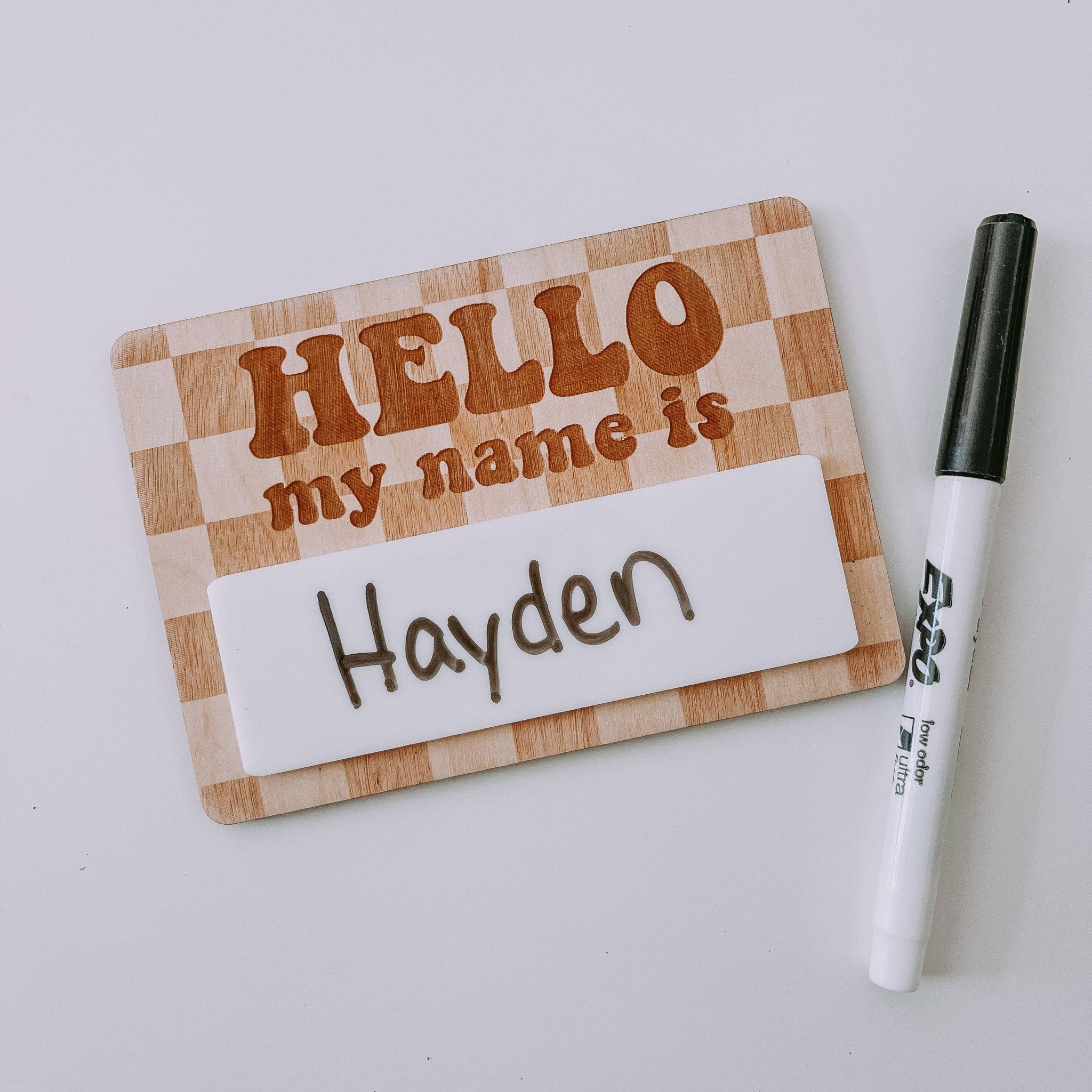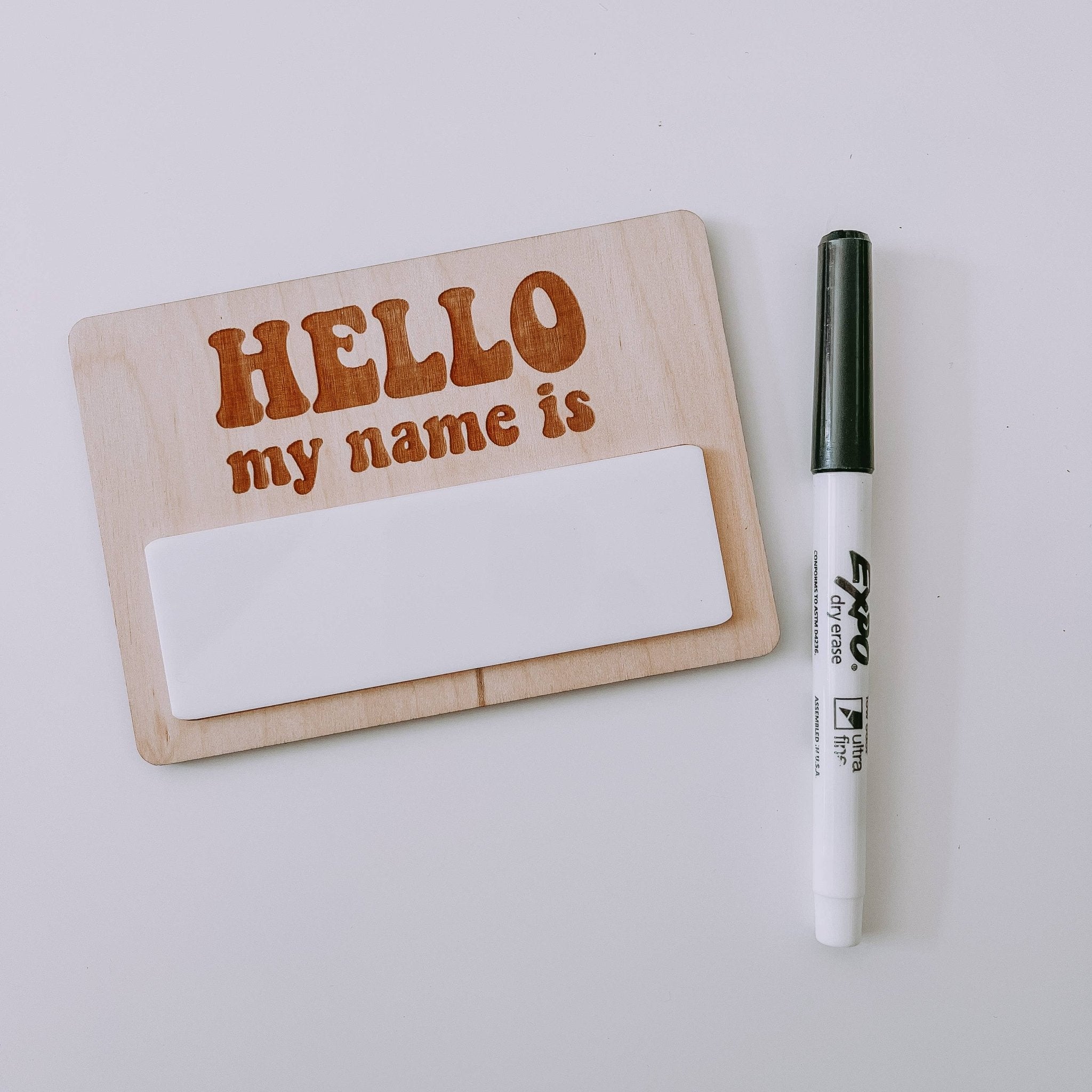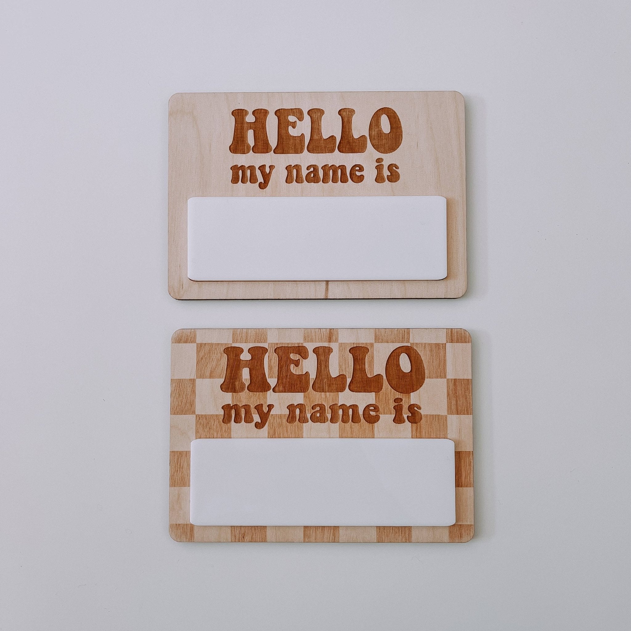 Retro Hello My Name Is, Reusable Wood Name Tag, Birth Announcement, Name Reveal