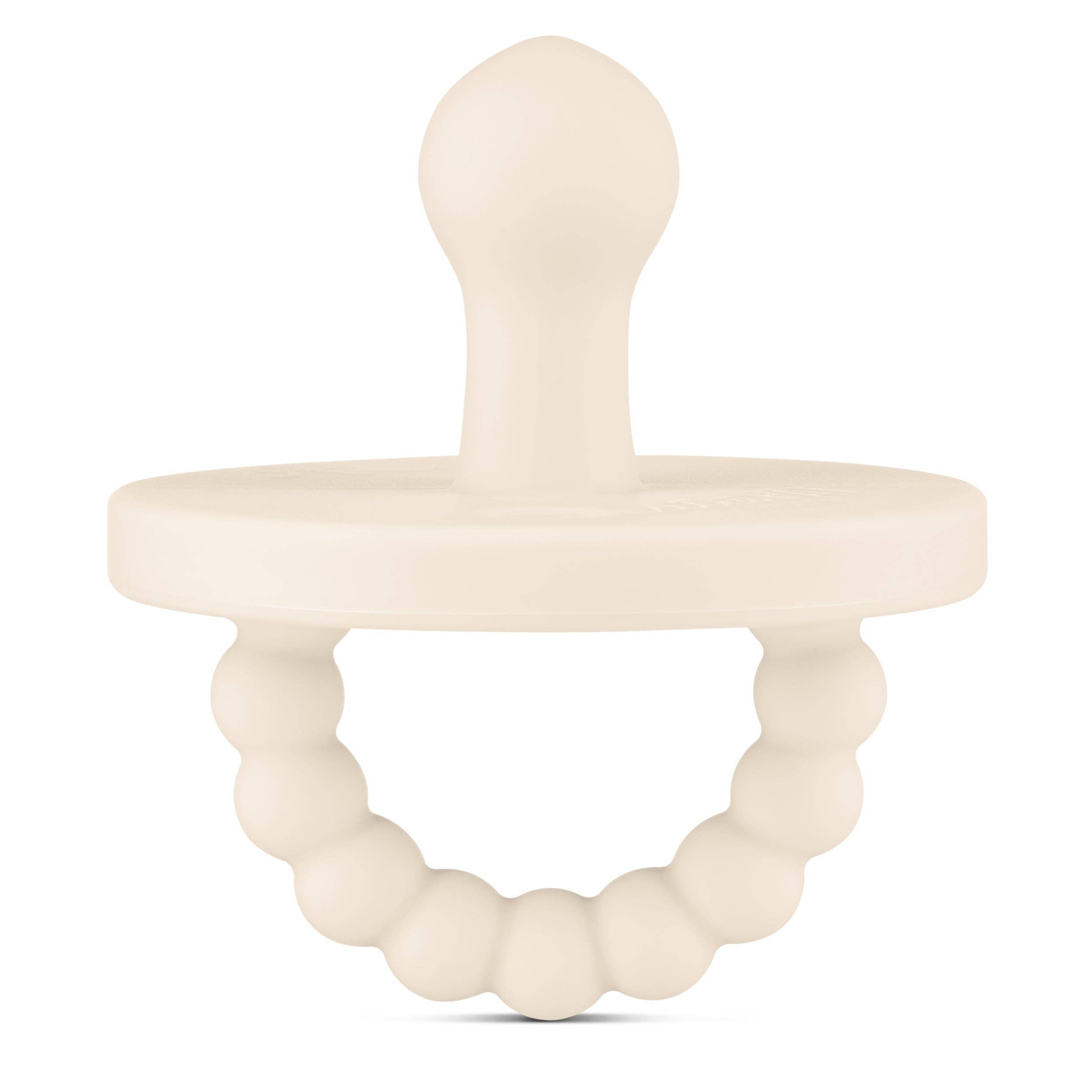 The Cutie PAT Bulb 0-6M has a soft cherry-shaped nipple, and can be used by newborns up until 6 months. Once baby develops teeth, transition to a 0-24M or a Stage 2 Cutie PAT, for babies with or without teeth. The Cutie PAT (Pacifier And Teether) is a multifunctional 2-in-1 patented design. The nipple was created to soothe, while the teether was developed to aid in teething relief. The Cutie PAT is a safe, one-piece design made out of 100% medical-grade silicone. It has a large round shield for teething, and large holes for safe breathing. The teether handle provides comfort for sore gums, and also makes it easy for baby to hold and place in their mouth. PATENTED DESIGN US Patent No. D887,014 S
