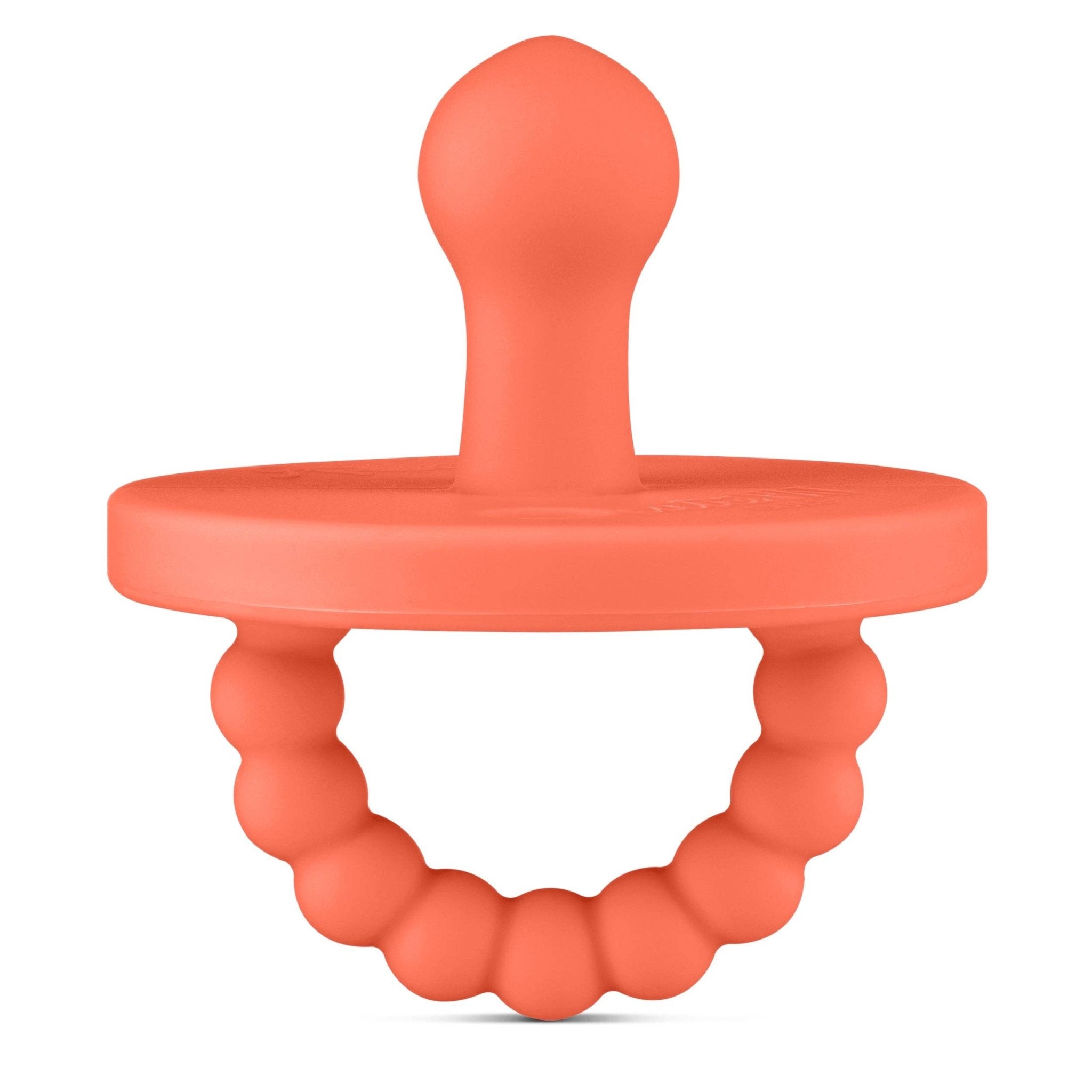 The Cutie PAT Bulb 0-6M has a soft cherry-shaped nipple and can be used by newborns up until 6 months. Once baby develops teeth, transition to a 0-24M or a Stage 2 Cutie PAT, for babies with or without teeth. The Cutie PAT (Pacifier And Teether) is a multifunctional 2-in-1 patented design. The nipple was created to soothe, while the teether was developed to aid in teething relief. The Cutie PAT is a safe, one-piece design made out of 100% medical-grade silicone. It has a large round shield for teething, and large holes for safe breathing. The teether handle provides comfort for sore gums, and also makes it easy for baby to hold and place in their mouth. PATENTED DESIGN US Patent No. D887,014