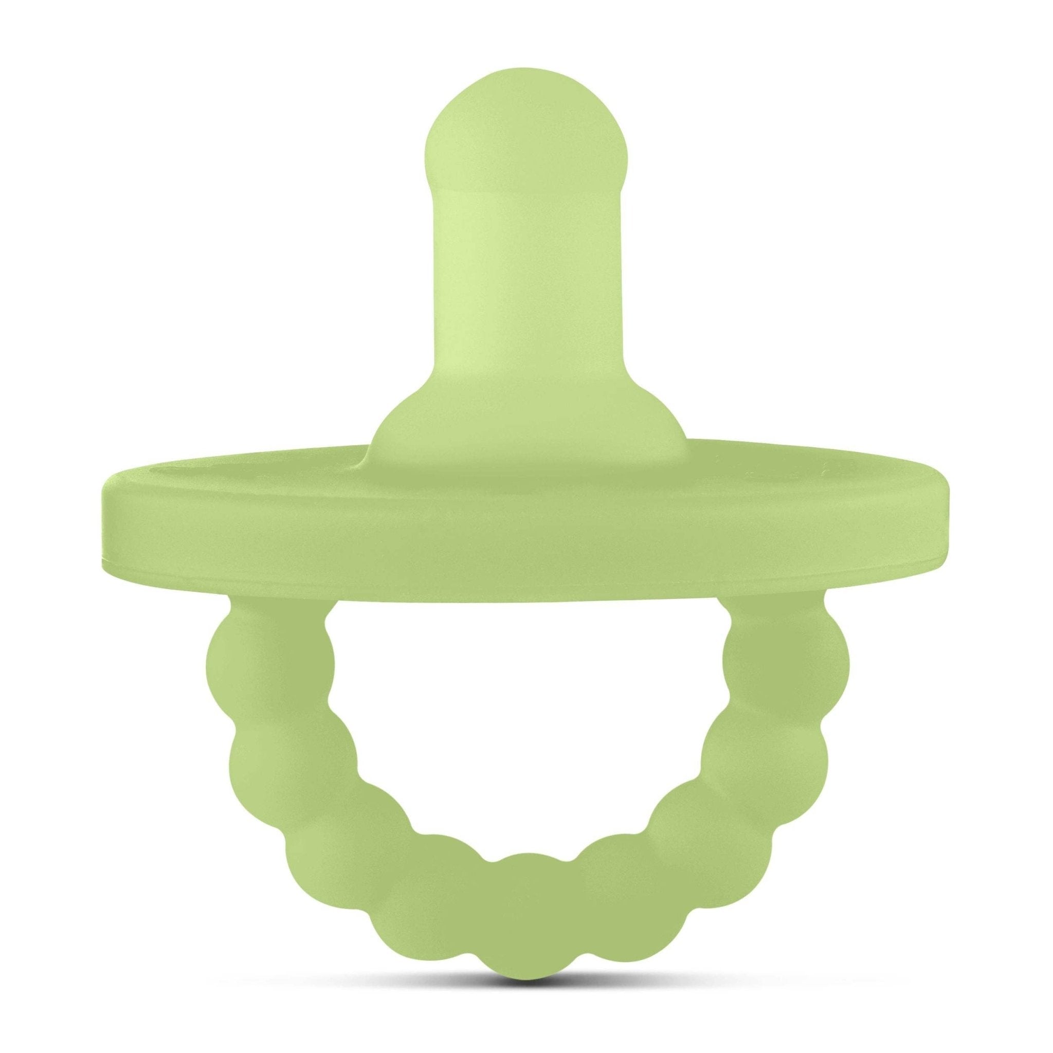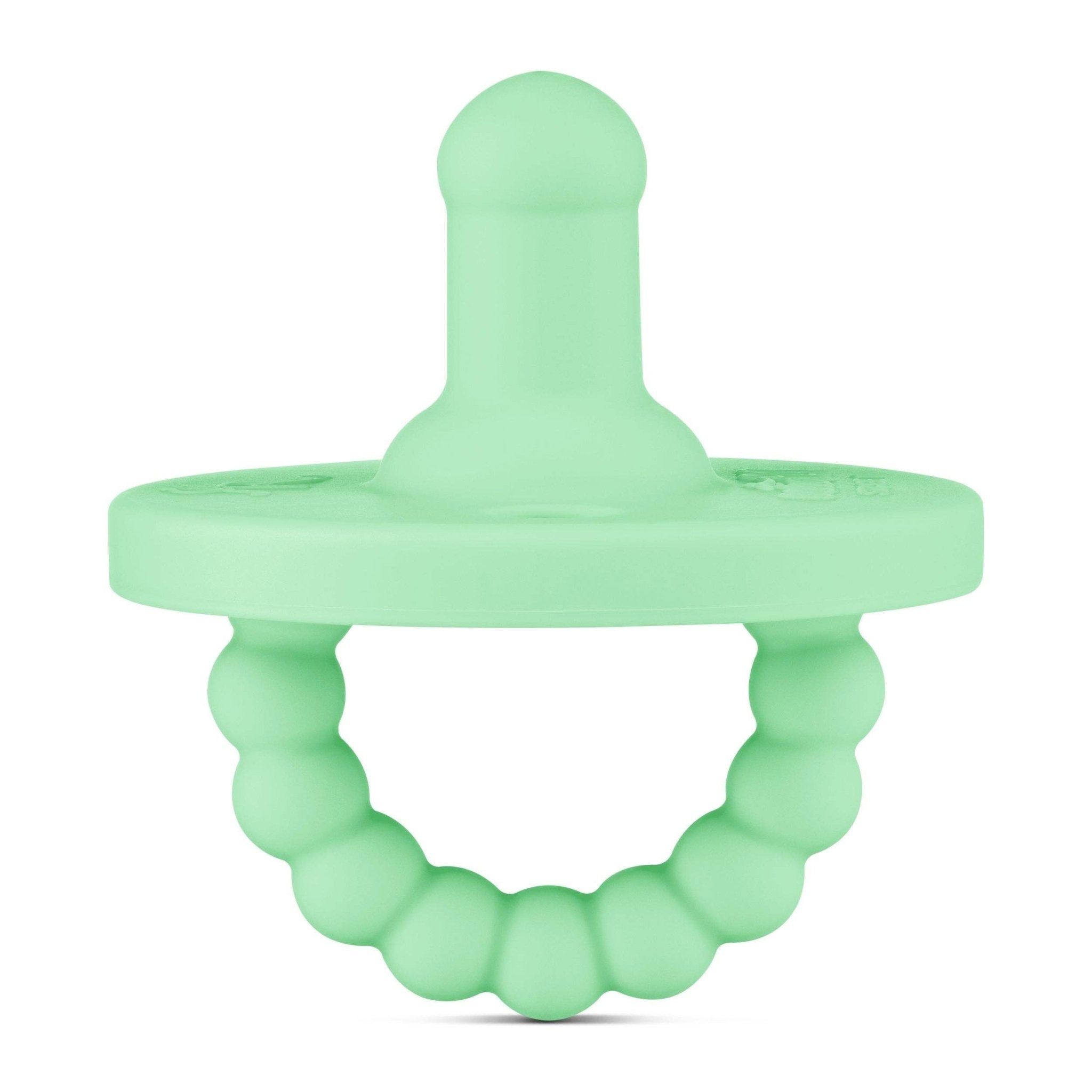 The Cutie PAT (Pacifier And Teether) is a multifunctional 2-in-1 patented design. The nipple was created to soothe, while the teether was developed to aid in teething relief. The Cutie PAT is a safe, one-piece design made out of 100% medical-grade silicone. It has a large round shield for teething, and large holes for safe breathing. The teether handle provides comfort for sore gums, and also makes it easy for baby to hold and place in their mouth.