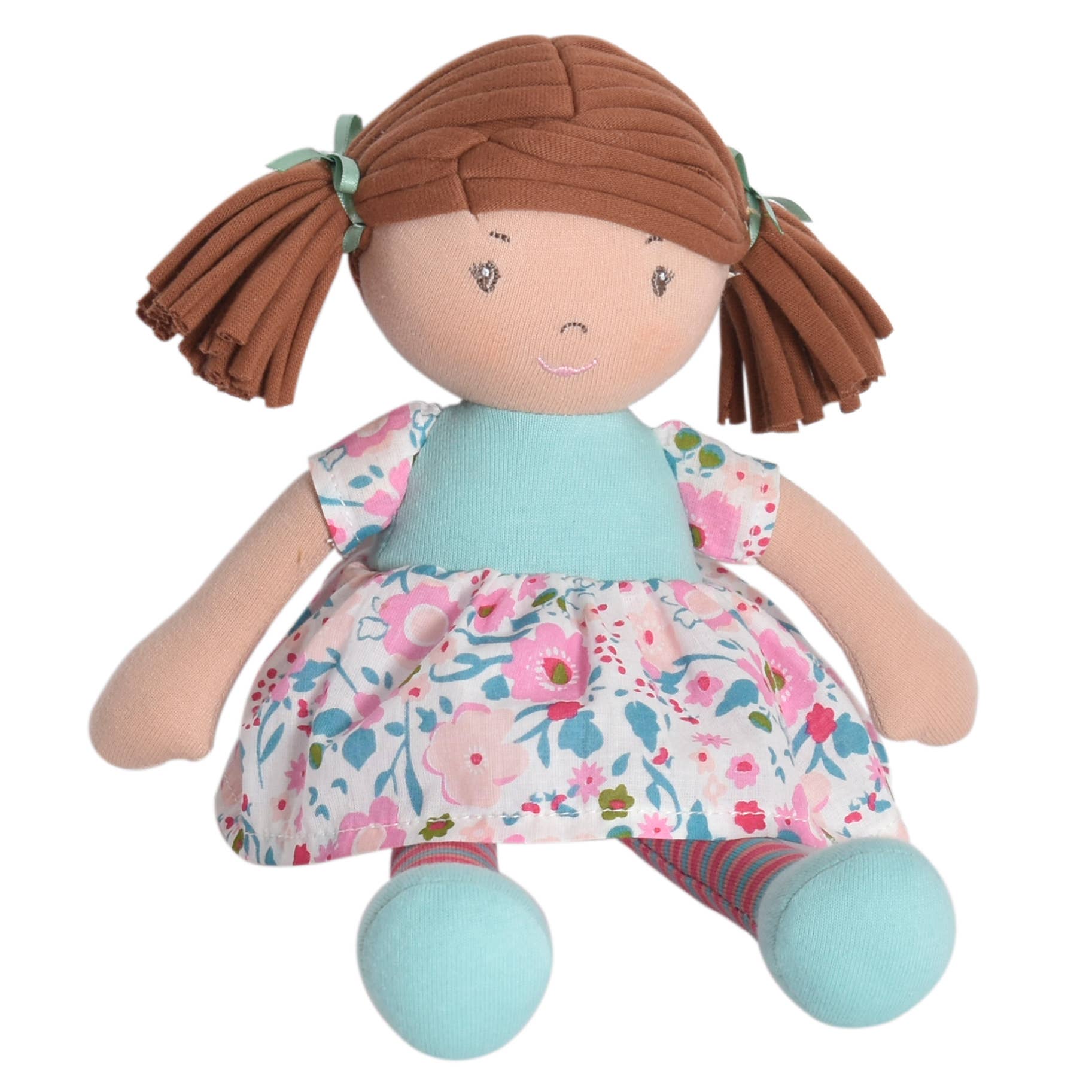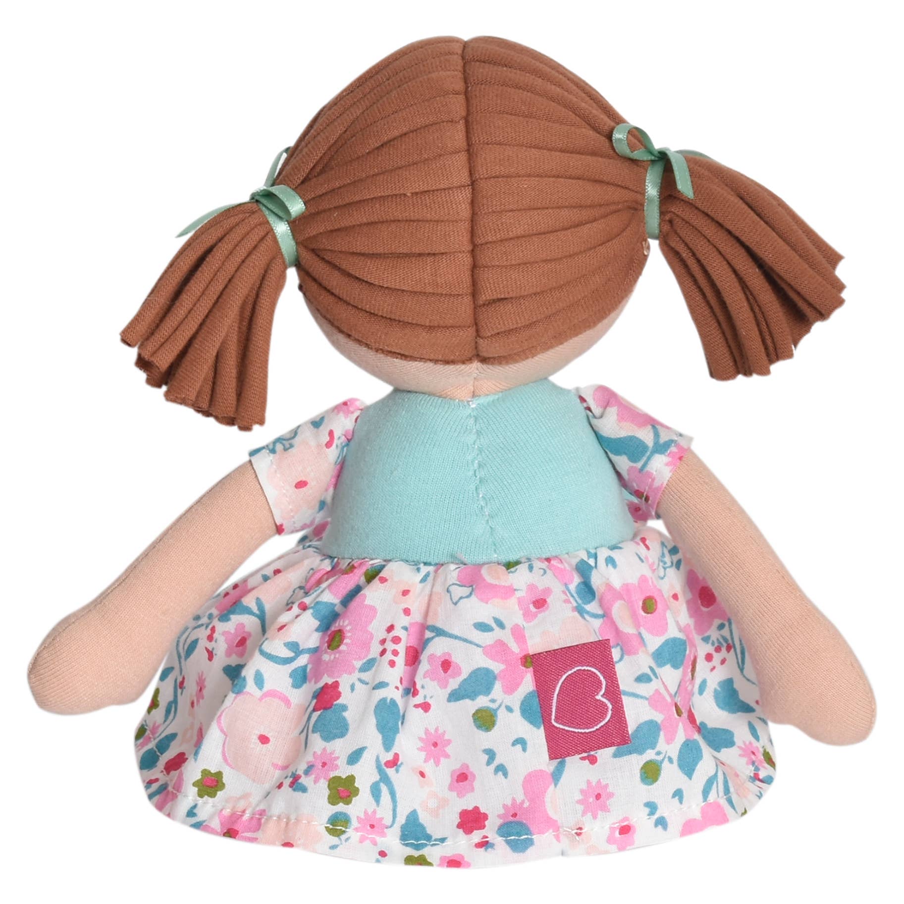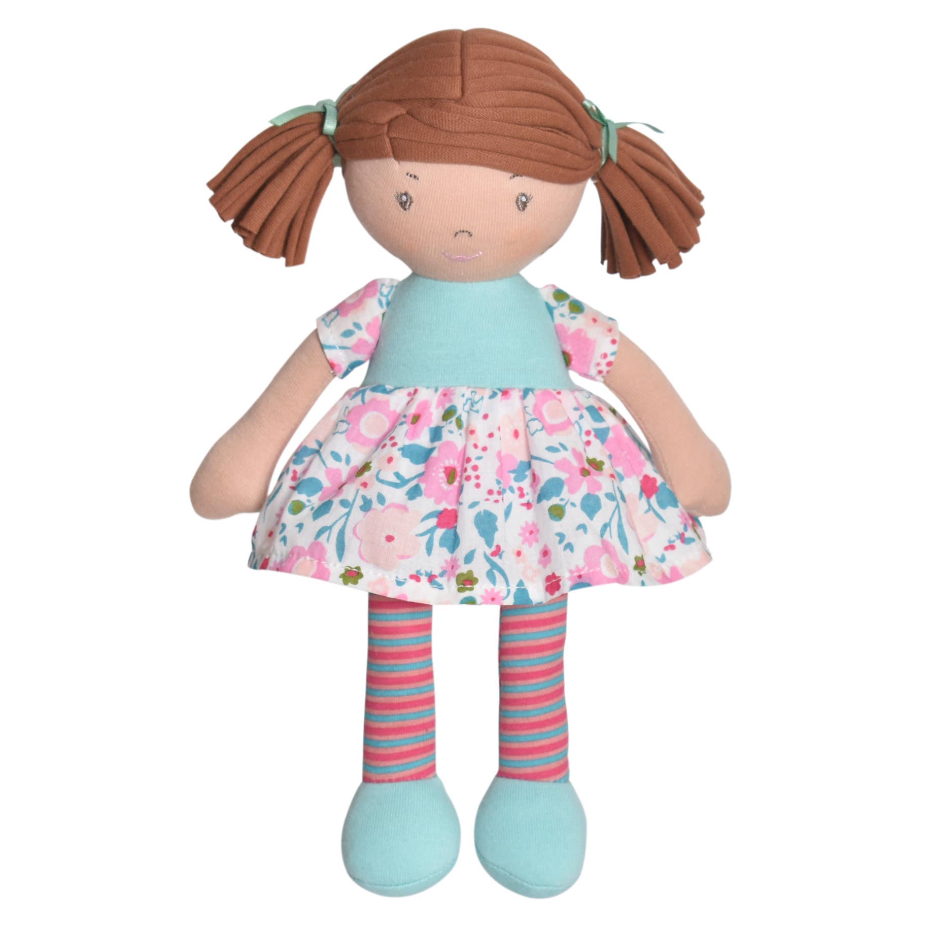 Features: Soft body rag doll with embroidered facial features and printed clothing.