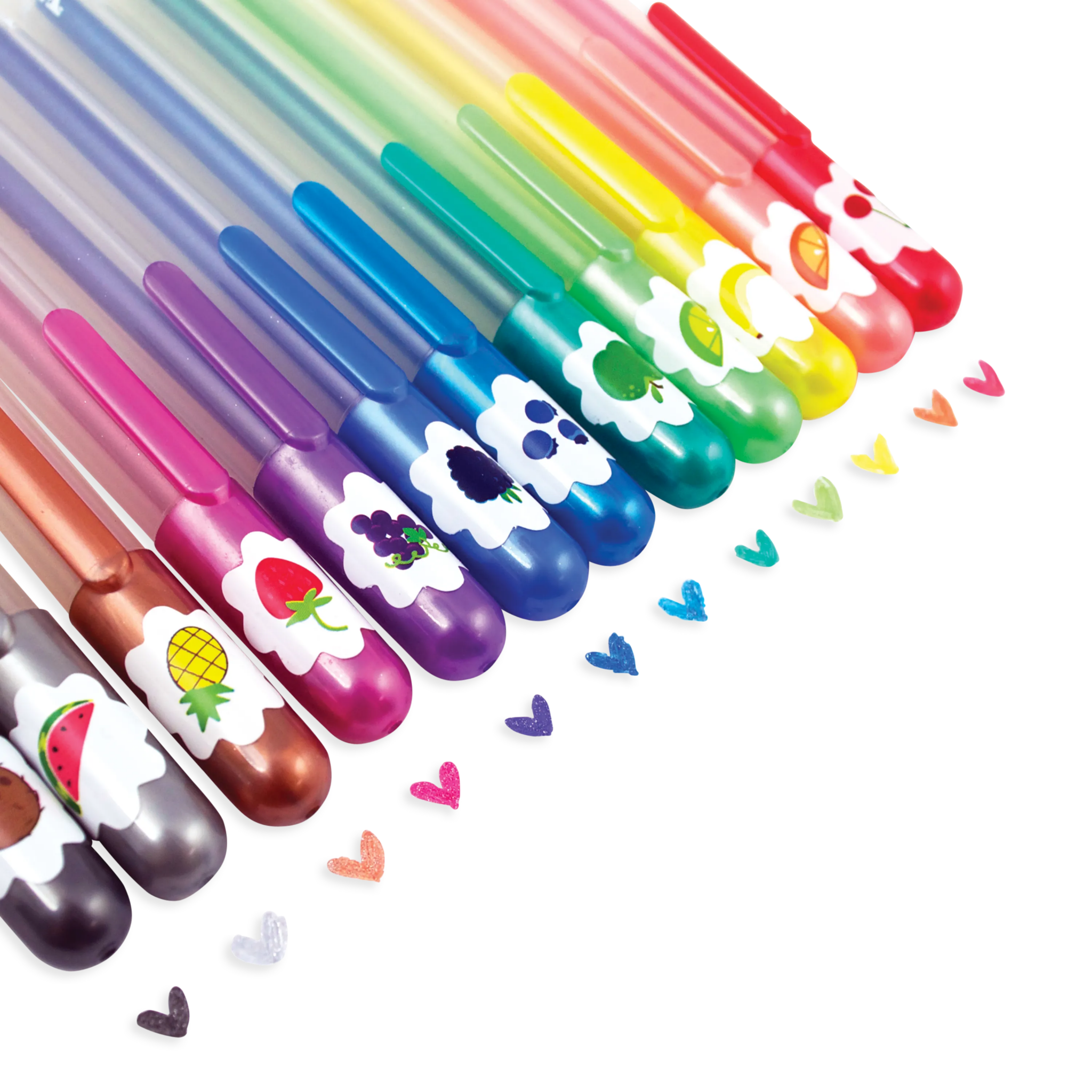 Make your art dazzle and experience the fragrant scents as you create. Each color sparkles with glitter and is scented with lime, banana, orange, cherry, strawberry, grape, apple, raspberry, blueberry, watermelon, coconut, or pineapple. This fruity fantastic set will add a vibrant dash of color and bling to any masterpiece.