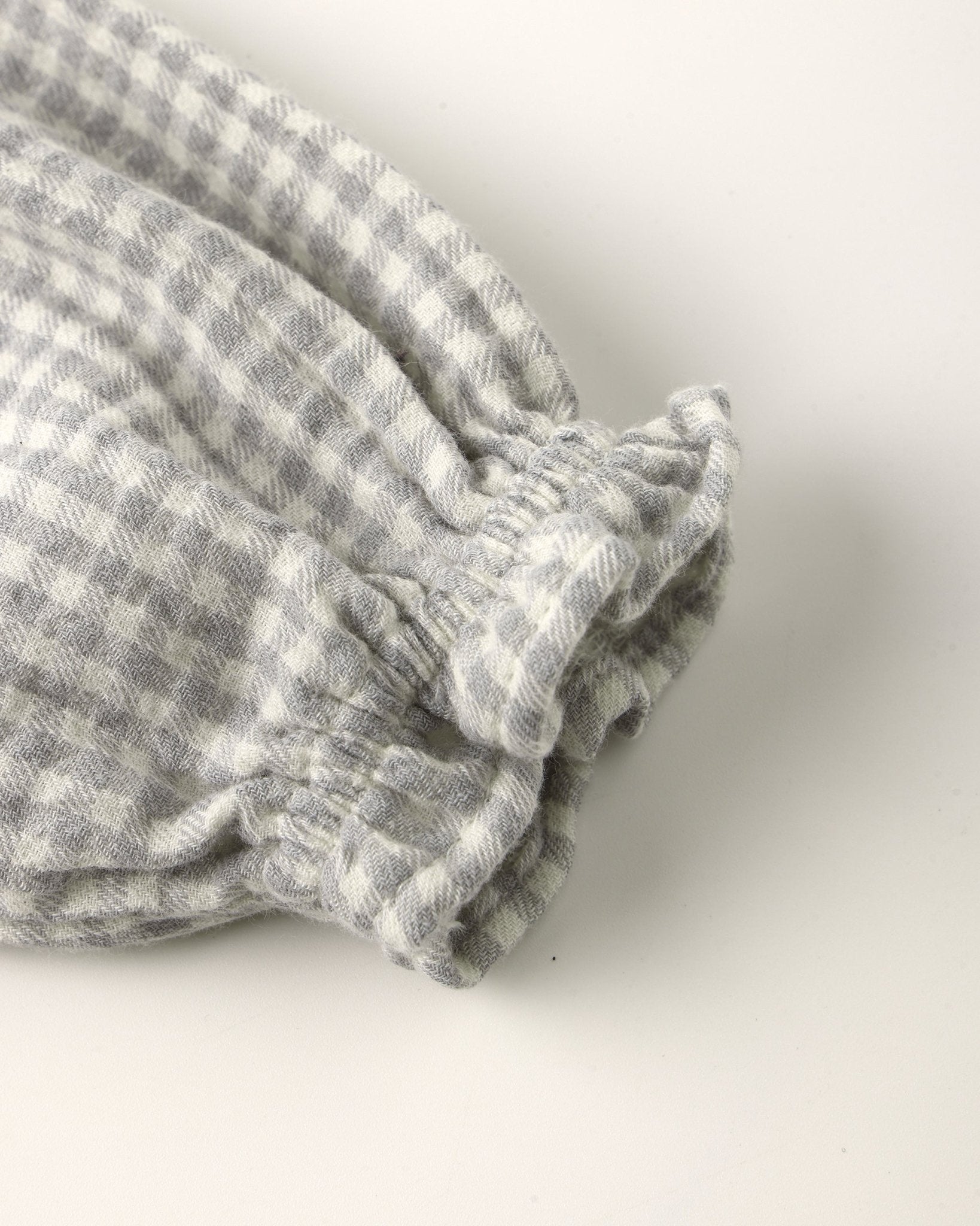Our Eden Romper features delicate smocking across the chest, gathered ruffle details at the wrists, and a sweet ruffled neckline—an effortlessly charming piece for your little one.