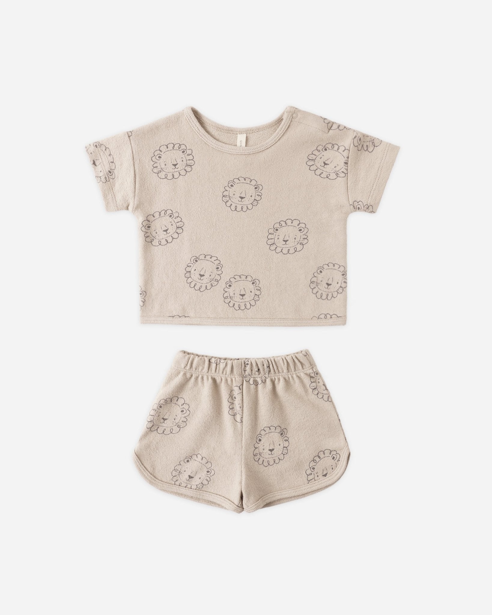 Keep your little explorer cool with this ultra-soft, 100% organic cotton spongy knit set. Featuring a whimsical lion print in a neutral oat hue, it’s the ultimate breathable staple for sunny adventures and effortless play.