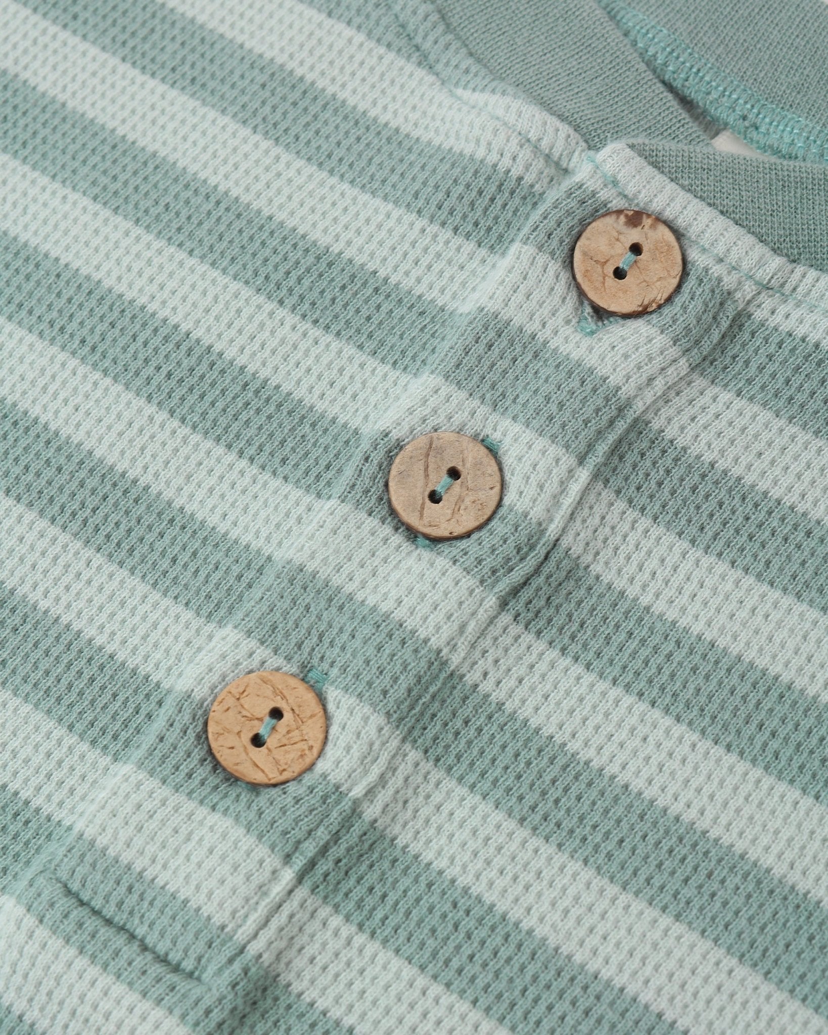 Experience ultimate summer comfort with this 100% cotton waffle knit duo. Featuring a breezy Henley-style tee and matching shorts, it’s the perfect blend of coastal style and all-day playability. Soft, breathable, and effortlessly cool for your little explorer.