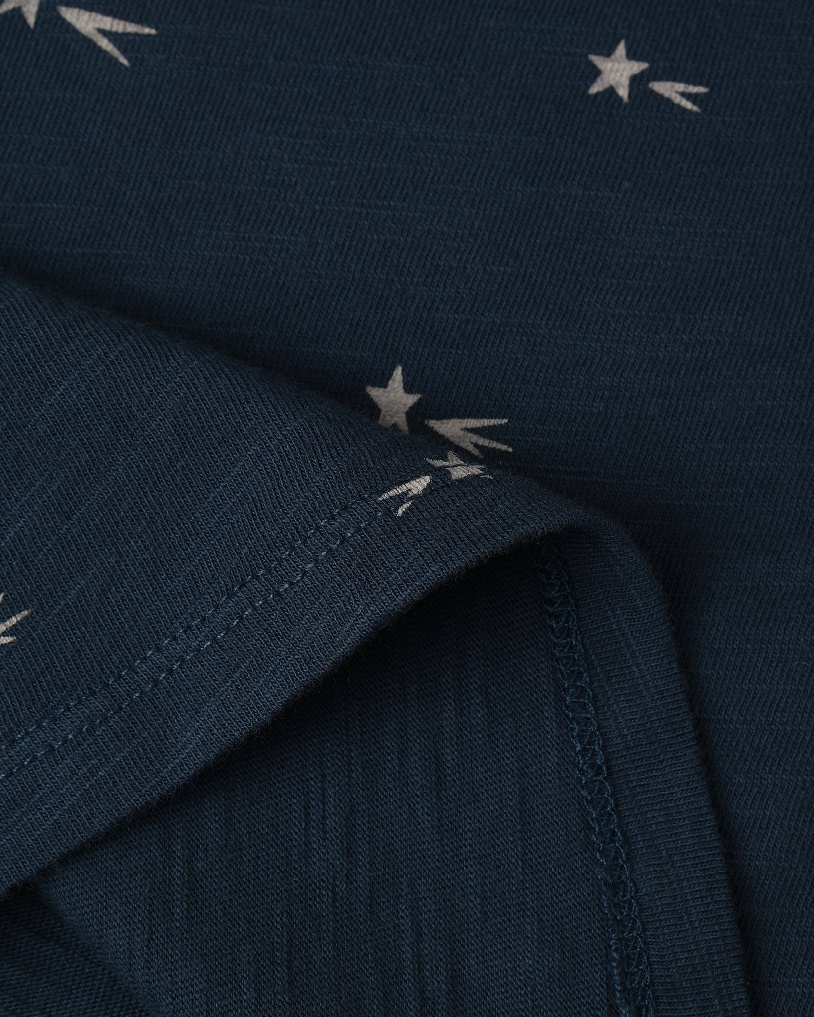 This comfortable cotton jersey set includes a relaxed long sleeve crewneck tee and dropped-crotch slouch pants. Shoulder snaps included on sizes 0–3M - 6–12M for easy changes.