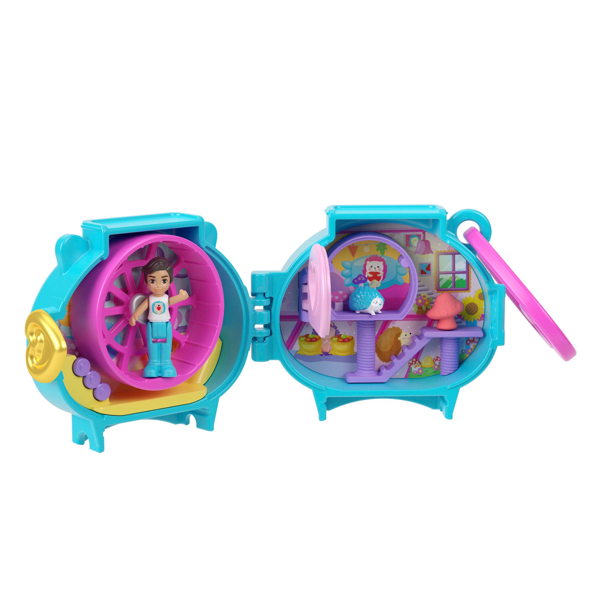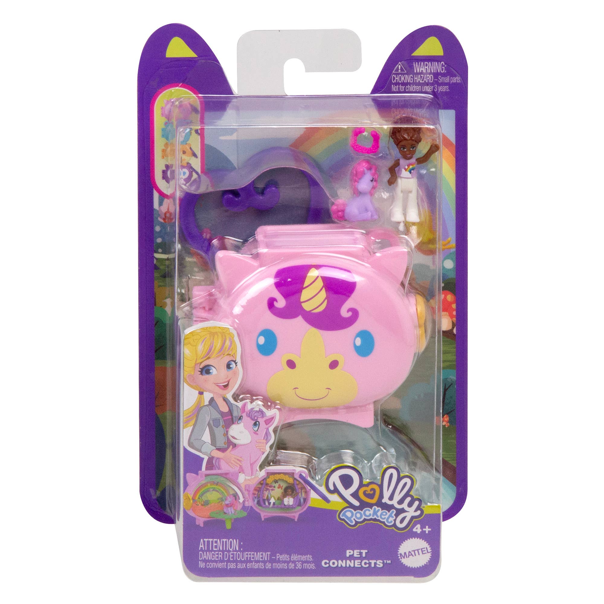 Polly Pocket™ Pet Connects™ compacts stack up playtime fun! Each portable toy features an adorable animal shape on the outside and opens to an animal-themed adventure on the inside. A micro doll, animal figure, storytelling accessory and kid-activated actions fill the playset and engage imaginations. Kids can collect them all and stack the compacts on top of each other to build a bigger world. Heart-shaped clips attach to backpacks and more to take the compacts on the go. Offering anytime, anywhere fun, Polly™ compacts make a great gift for kids 4 years and older.