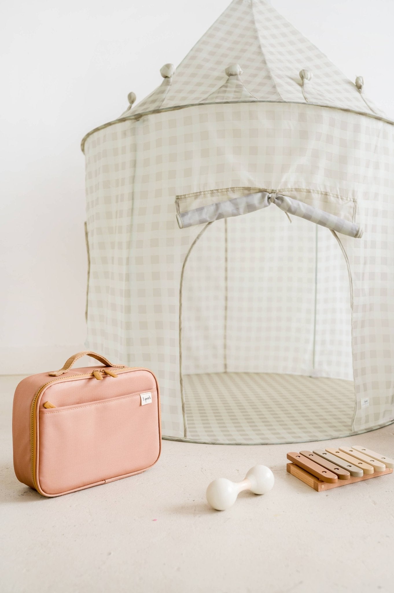 The 3 Sprouts Recycled Fabric Tent is the perfect play tent for your child! Easily assembled, lightweight and transportable, this tent will bring your child's imaginary world to life! This is the perfect place to play with friends or get cozy to read a book. Comes with tear-resistant recycled polyester and poles for sturdiness. Tent has 2 mesh windows and a door that can be raised and lowered. Comes in solid colors and prints to fit seamlessly in any room of your home!